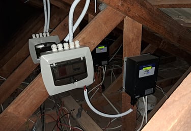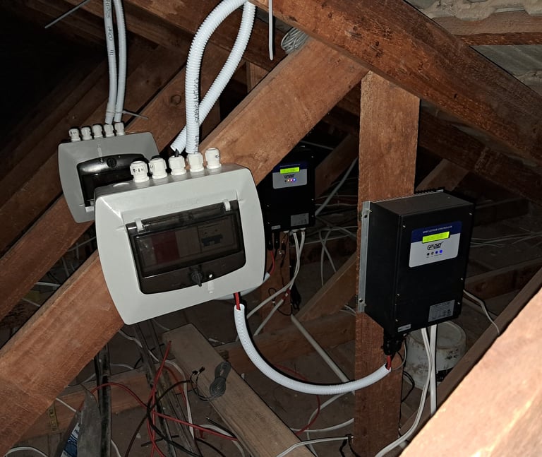 A full solar PV installation supplies electricity to selected or multiple circuits within a home or business and may include battery storage depending on the application. These systems are designed to reduce reliance on the grid and, where applicable, provide continuity of supply during outages.